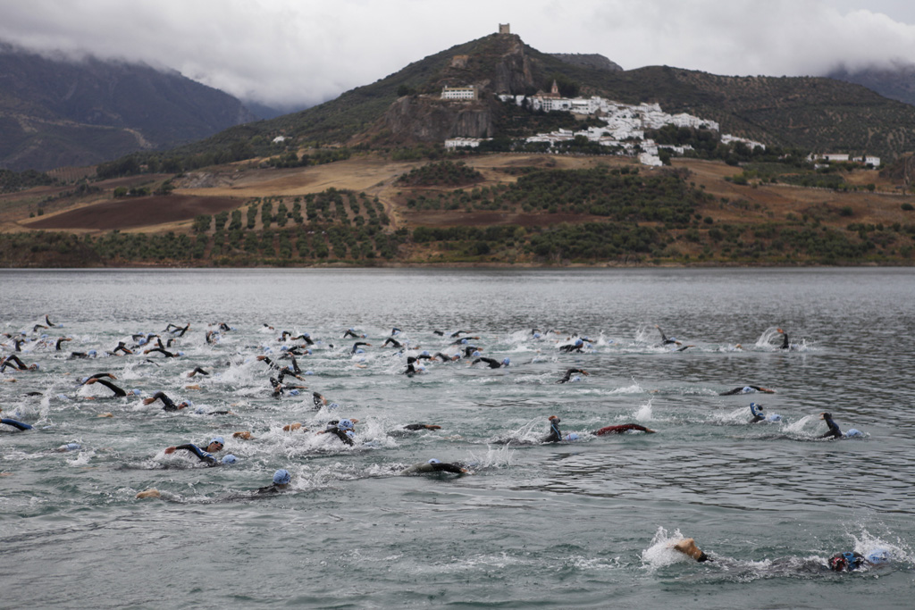 Es viernes y me acerco a Zahara a recoger mi dorsal, el 311 como los 300 de Esparta y voy hacia el pantano para ver el recorrido. Mi corta experiencia en triatlones, por no aludir a nula me hizo ver que el recorrido aunque 100 m mayor que el de Lisboa me pareciese mas corto, … claro, que mi padre que me acompañaba seguía diciendo lo de Portugal: …. pero que necesidad tienes hijo ?.